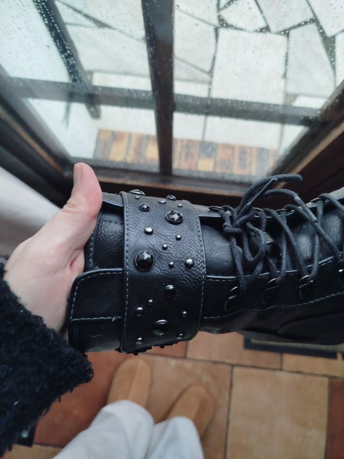 🌹✨ Bottines noir à talon et Strass idéal pour un magnifique look Rock 🌹✨ Mustang, taille 41 , fourré à l'intérieur et très confortable 🌹✨ Très bon état mis 1 fois , juste abîmé légèrement au niveau de la fermeture sur une des deux bottes, elles seront cirées avant l'envoie 🌹✨ N'hésitez pour plus de photos ✨ Prix négociable ✨