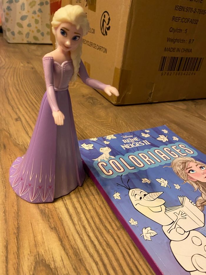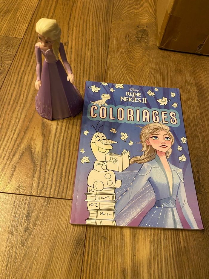 Lot figurine et livre coloriage reine des neiges. La figurine est en parfait état, le livre de coloriage est en très bon état mais quelques dessins sont dej coloriés (voir photos).
