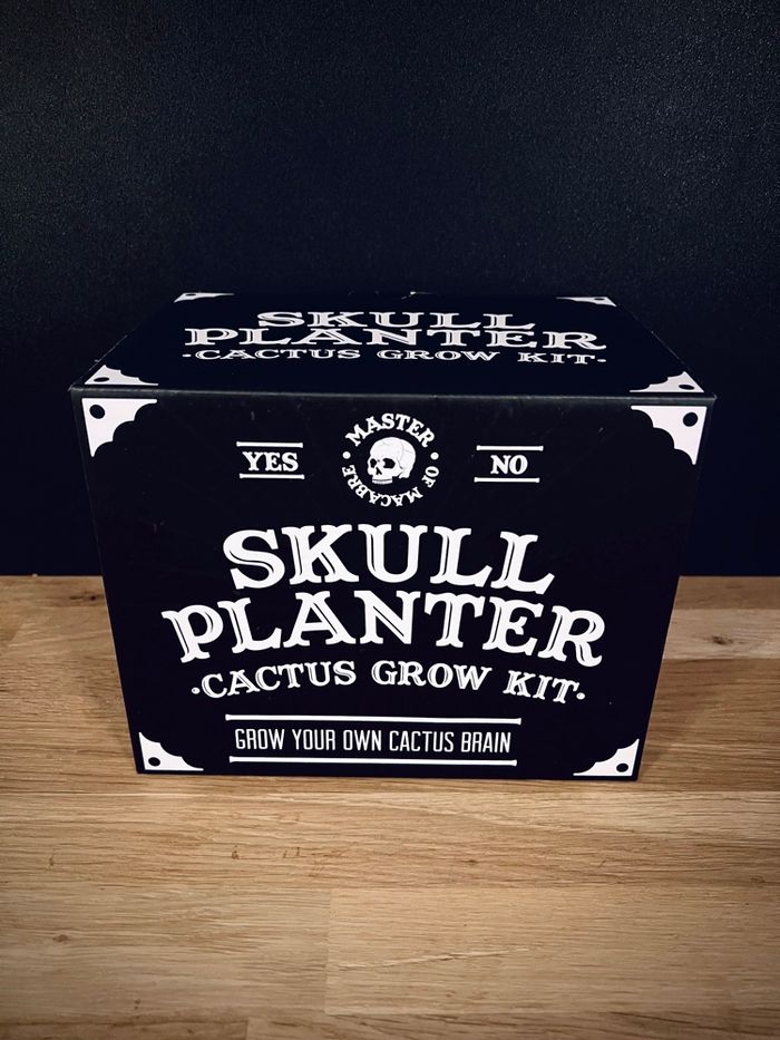 Skull Planter – Cactus Grow Kit, neuf et jamais utilisé. Pot décoratif en forme de tête de mort (crâne), destiné à faire pousser un cactus. Idéal comme objet de décoration originale (style gothique, rock, Halloween) ou cadeau. 📦 Contenu du coffret • 1 pot en forme de crâne (couleur blanche) • Kit de culture pour cactus (contenu encore emballé) • Boîte d’origine incluse 🔍 État • Produit neuf • Pot encore protégé • Contenu non utilisé • Boîte en très bon état (voir photos) 📏 Dimensions • 20 × 16 × 14 cm 🎁 Utilisation • Décoration intérieure • Cadeau original • Plante / cactus (culture à réaliser par l’acheteur) Envoi soigné ou remise en propre possible sur Neuilly sur Seine. N’hésitez pas à m’écrire pour plus d’informations.