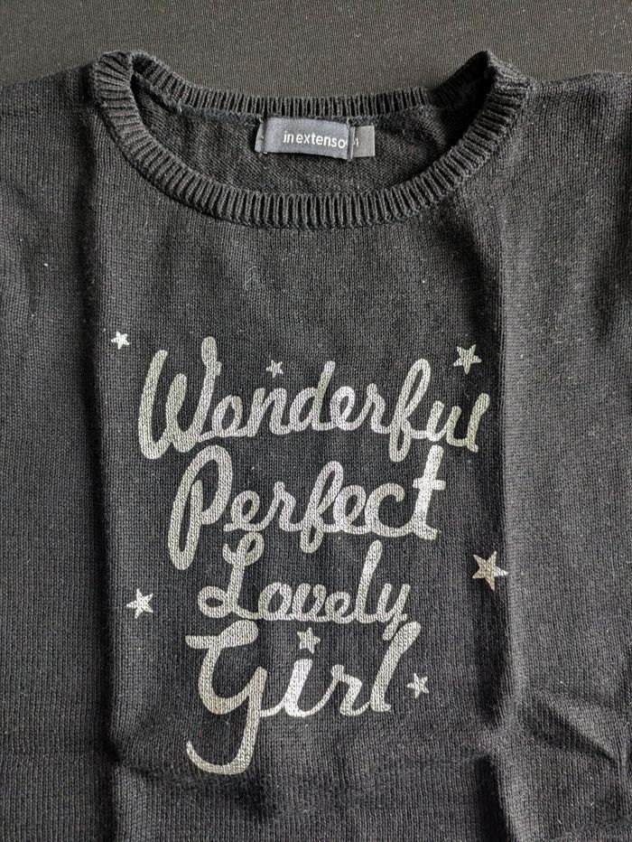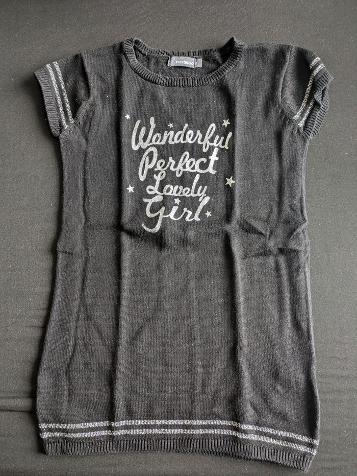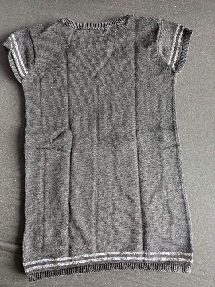 Bonjour, Je vends cette jolie robe noir à inscription argentée pour fille 4 ans, idéal pour fêtes.