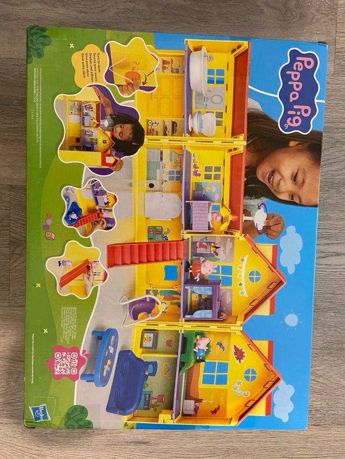Grande maison Peppa Pig avec plusieurs pièces et accessoires. Idéal pour stimuler l’imagination des enfants.