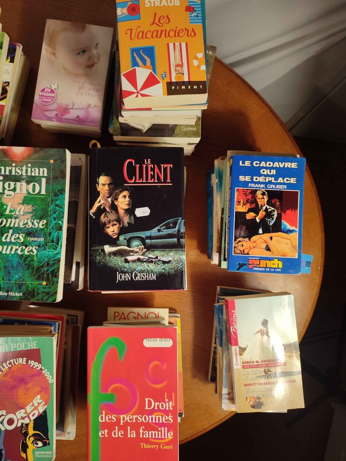DESCRIPTION (BÉNÉFICES) : Avis aux bouquinistes, revendeurs ou passionnés de lecture ! 📢 Je vide ma bibliothèque avec ce LOT n°1 exceptionnel de plus de 100 ouvrages ! ✨ C'est l'opportunité parfaite pour refaire votre stock à petit prix ou découvrir des pépites variées. 💎 Ce que vous trouverez dans ce carton magique : Littérature & Best-sellers : John Grisham (Le Client), Christian Signol, Emma Straub... ✍️ Collections Vintage & Polar : Des pépites comme la collection Harlequin (Azur), Punch, et des classiques du suspense. 🕵️‍♂️ Jeunesse & Scolaire : Des titres Castor Poche et des lectures pour les plus jeunes. 🎒 Savoir & Culture : Un ouvrage de référence en Droit des personnes et de la famille, des livres historiques (Napoléon), et bien plus ! 🏛️ Pourquoi craquer ? ✅ Volume énorme : Plus de 100 livres d'un coup ! 📈 ✅ Diversité : Du roman à l'ouvrage technique, il y en a pour tous les goûts. ✅ Prêt à l'envoi : Tout est déjà soigneusement emballé dans un grand carton (Lot n1). 📦 ✅ Potentiel Revente : Idéal pour faire de la marge à l'unité sur les brocantes ou sites spécialisés. 💶 MÉTA-DONNÉES À CONFIRMER : État : Très Bon état / État correct (Certains sont vintage et portent les marques du temps, ce qui fait leur charme !). Prix : 34,99€ EUROS selon votre urgence de vente (soit moins de 0,50€ le livre !). Poids : Attention, le colis est lourd ! Vérifiez bien les options de livraison (Mondial Relay / Relais Colis conseillés). HASHTAGS : #LotLivres #Revendeur #LivreOccasion #Bibliotheque #Destockage #JohnGrisham #Harlequin #LivreEnfant #Droit #Culture #VintageBooks #BeebsShopping