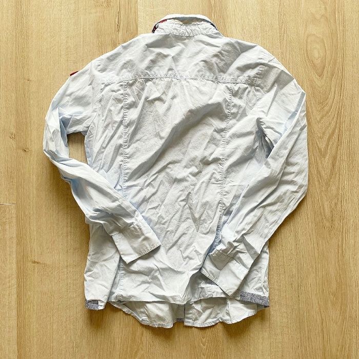 🇳🇴 Chemise unie avec logo brodé pour Homme en très bon état et fabriquée en coton. Coupe Slim Fit pour petit M. ----- ⭐ Marque/Gamme : Napapijri 🎨 Coloris : Bleu Clair 📏 Taille/Mensurations : M ----- 📦 Envoi rapide et soigné 💡 Astuce : Jusqu'à -30% en achetant en lot !