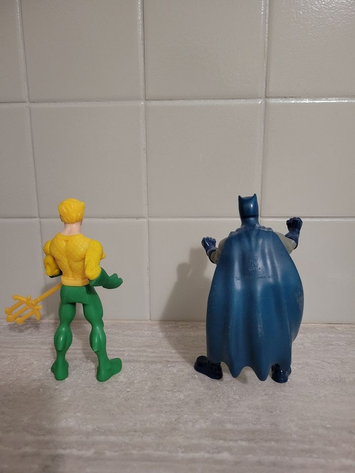 Lot de deux figurines : Batman et Aquaman. Hauteur : 13 cm #elojohnjouets #figurinekinder #figurines #figurinebatman #figurineaquaman