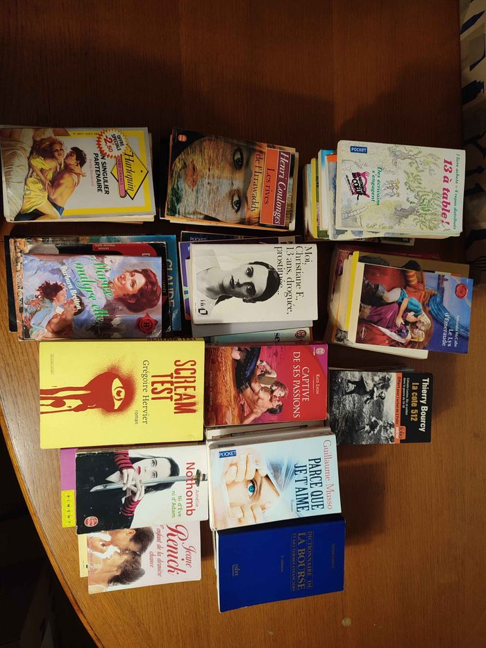 BÉNÉFICES POUR VOTRE BIBLIOTHÈQUE : Avis aux grands lecteurs et amateurs de bonnes affaires ! 📣 Je propose ce Lot n°6 exceptionnel contenant plus de 50 livres. Une sélection ultra-variée, idéale pour ne jamais manquer de lecture, pour offrir ou même pour la revente ! 💸 Ce que vous trouverez dans ce superbe carton : Best-sellers & Littérature : Guillaume Musso (Parce que je t'aime), Amélie Nothomb (Ni d'Ève ni d'Adam), René Barjavel (La nuit des temps). Suspense & Thriller : Scream Test de Grégoire Hervier, Thierry Bourcy. Romances & Évasion : De nombreux titres Harlequin, Barbara Breton, et des récits passionnants comme Le Mec de la tombe d'à côté. Incontournables : Moi, Christiane F., 13 ans, droguée, prostituée..., 13 à table !. Bonus : Un dictionnaire de la bourse et bien d'autres surprises ! ÉTAT : L'ensemble est en très bon état global. Les livres ont été manipulés avec soin et sont prêts pour leur prochain voyage. ♻️ PRIX : 19,99€ (soit environ 0,80€ le livre ! 😱) 🤝 PRIX NÉGOCIABLE : Je reste ouvert à toute proposition raisonnable. N'hésitez pas à me contacter pour en discuter ! Livraison : Compte tenu du nombre de livres, le colis sera volumineux et lourd. Pensez à vérifier les options de livraison ! Lot : Identifié comme le Lot n°6. HASHTAGS : #Livres #LotDeLivres #Lecture #BeebsBooks #GuillaumeMusso #AmelieNothomb #Harlequin #Occasion #PetitPrix #Biblio #Roman #PassionLecture