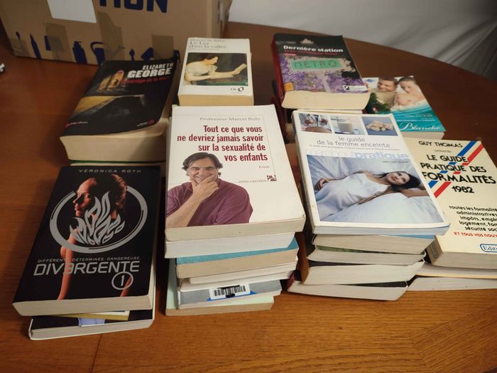 BÉNÉFICES POUR VOTRE BIBLIOTHÈQUE : Avis aux lecteurs passionnés ! 📣 Je propose ce Lot n°6 (ou n°5 selon votre choix) contenant plus de 50 livres. C'est la sélection idéale pour varier vos lectures sans vous ruiner ou pour compléter votre collection à petit prix ! 💸 Ce que vous trouverez dans ce carton : Best-sellers & Littérature : Guillaume Musso (Parce que je t'aime), Amélie Nothomb (Ni d'Ève ni d'Adam), René Barjavel. Suspense & Thriller : Scream Test de Grégoire Hervier, Elizabeth George, Michael Connelly. Vie Pratique & Société : Le guide de la femme enceinte, des ouvrages de Marcel Rufo, et des récits poignants comme Moi, Christiane F., 13 ans.... Romances & Divers : Nombreux titres Harlequin et romans d'évasion. ÉTAT : L'ensemble est en Très bon état global. Les livres ont été conservés avec soin et sont prêts pour une nouvelle vie. ♻️ PRIX : 19,99€ ! 😱) 🤝 PRIX NÉGOCIABLE : Je reste ouvert(e) à toute proposition raisonnable. N'hésitez pas à m'envoyer un message ! Livraison : Le carton est volumineux et lourd. Pensez à vérifier les frais de port ou optez pour une remise en main propre sur CENON. Identification : Lot n°5 . HASHTAGS : #Livres #LotDeLivres #Lecture #BeebsBooks #Musso #Nothomb #Occasion #PetitPrix #Roman #PassionLecture #Viderie