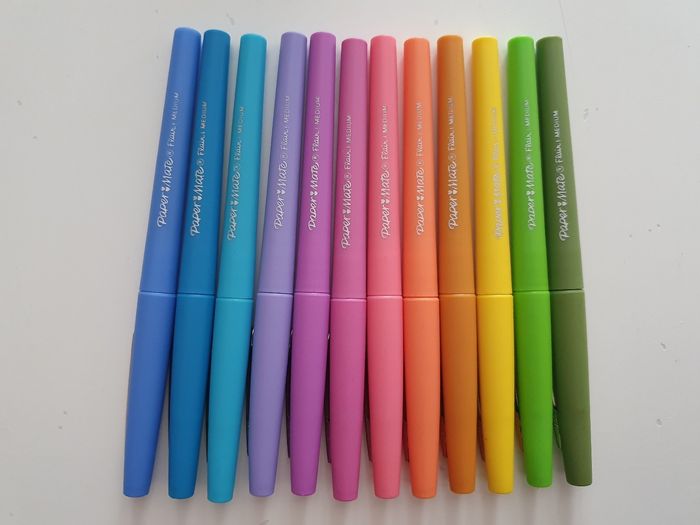 A vendre lot de 12 stylos Paper mate flair, coloris pastel. Pointe médium. Comme neufs ! Le bleu a servi une fois mais la taille d'écriture du stylo ne me convient pas (je recherche des stylos plus fin...) ! N'hésitez pas à jeter un coup d'œil sur mon dressing. Une réduction dès 2 articles achetés !