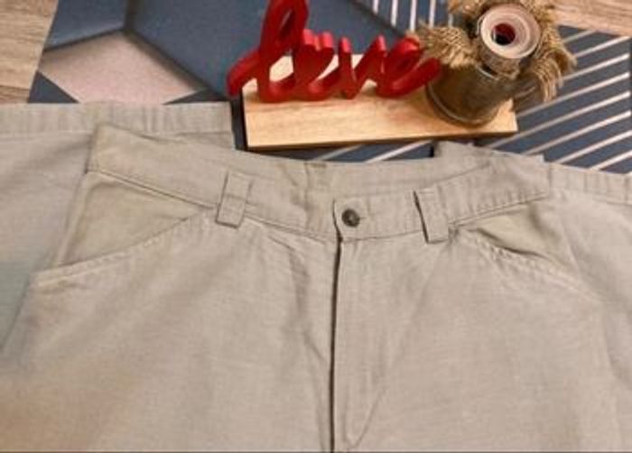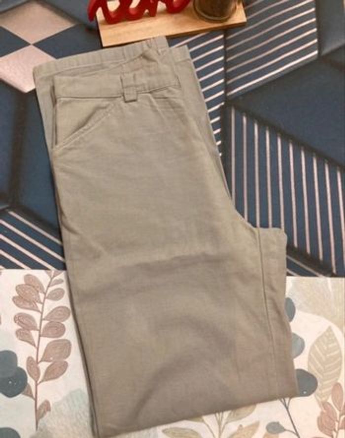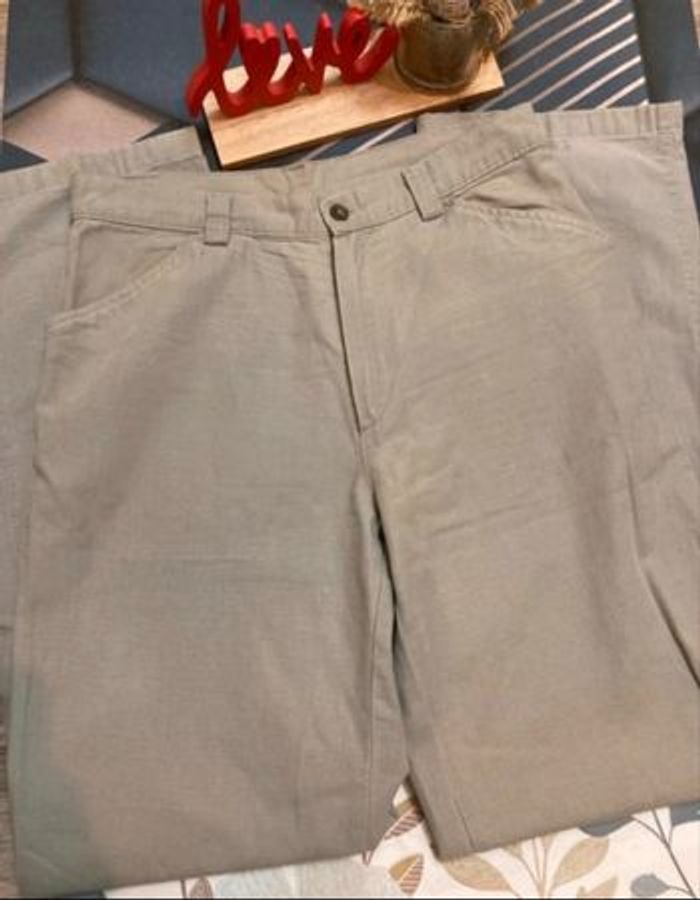 📦 beau pantalon homme 🎨 gris Pantalon effet toile / chino non stretch Poches latérales / bouton + zip / poches arrière à scratch / passants ceinture 📏 Largeur : 38 cm Longueur jambe : 105 cm Longueur entrejambe : 78 cm Largeur jambe : 23 cm Les mesures sont prises à plat. Taille 38 LCN SPORT 🚨remise sur lot activée ✨envoi rapide et soigné