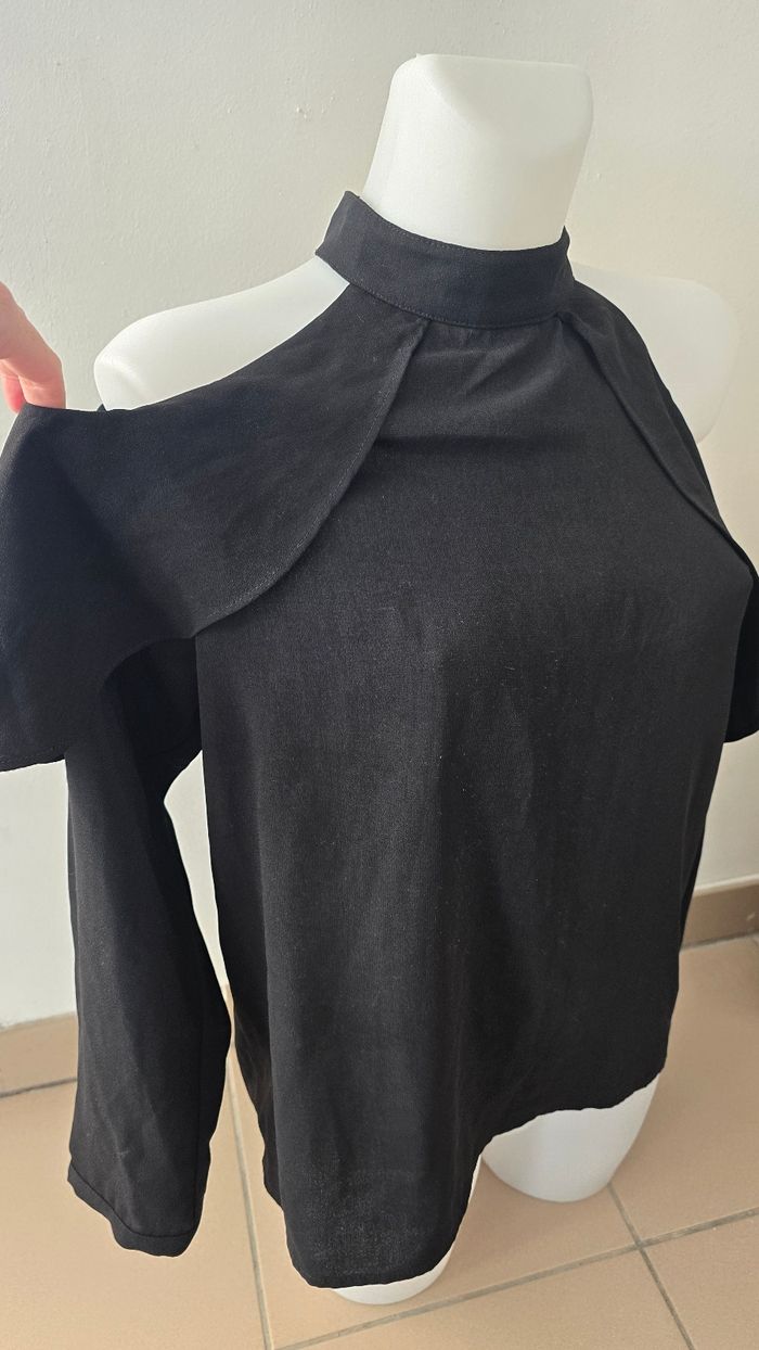 Blouse noire Épaules dénudées Volants Col rond #blouse #eight #blouseeight