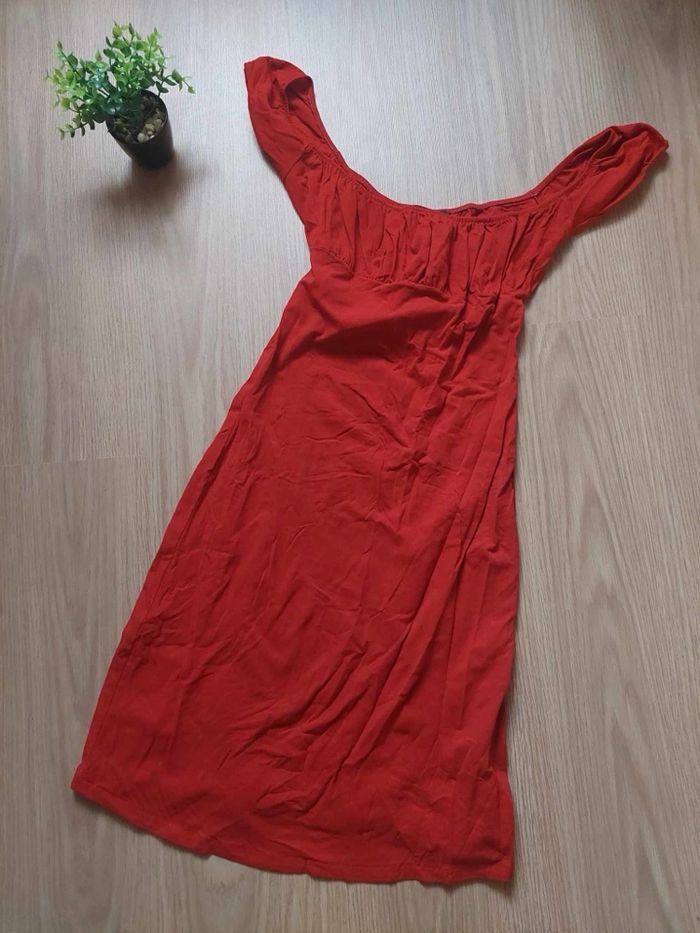 Robe courte rouge col bateau manches courtes Bershka T38 TBE 🌹 - photo numéro 2