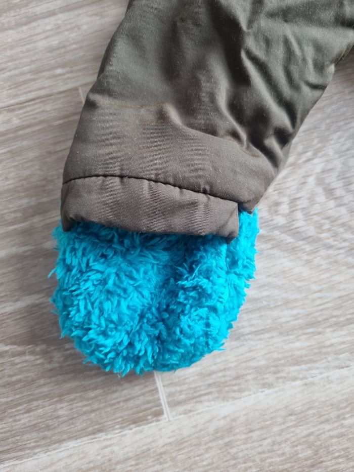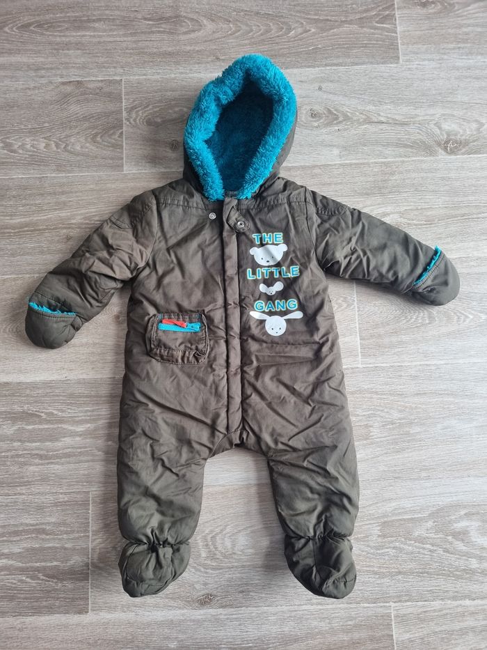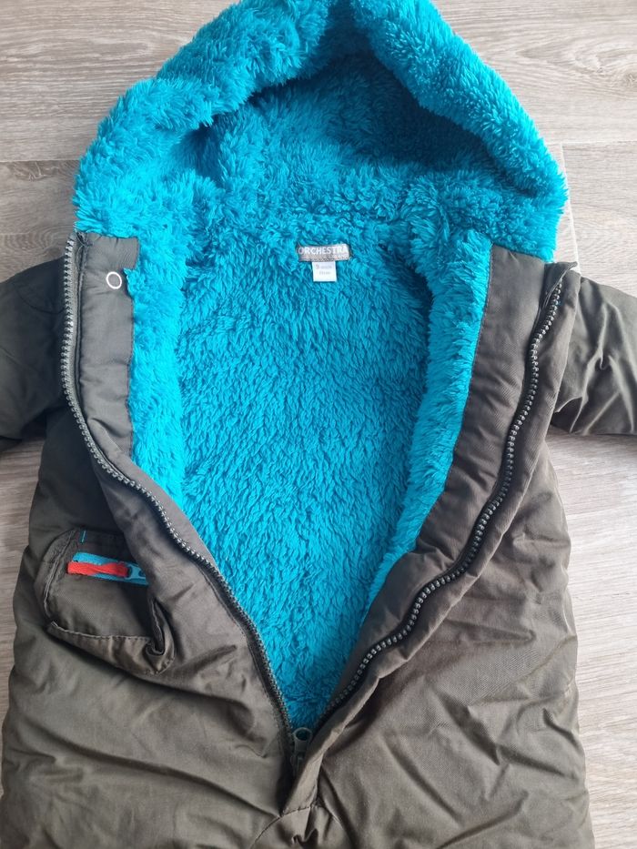 Combi-pilote kaki, intérieur bien chaud (tout doux) avec fermeture, mains retroussables, Orchestra 9 mois/71cm Excellent état