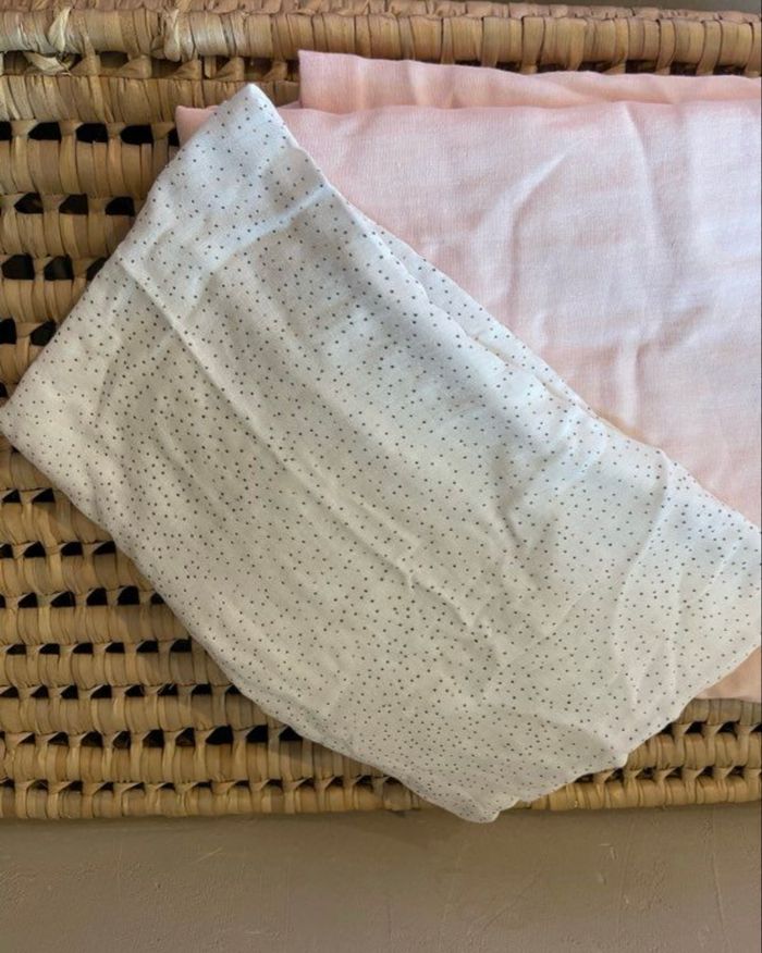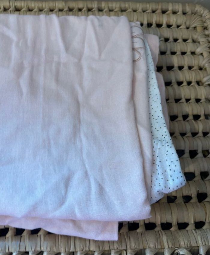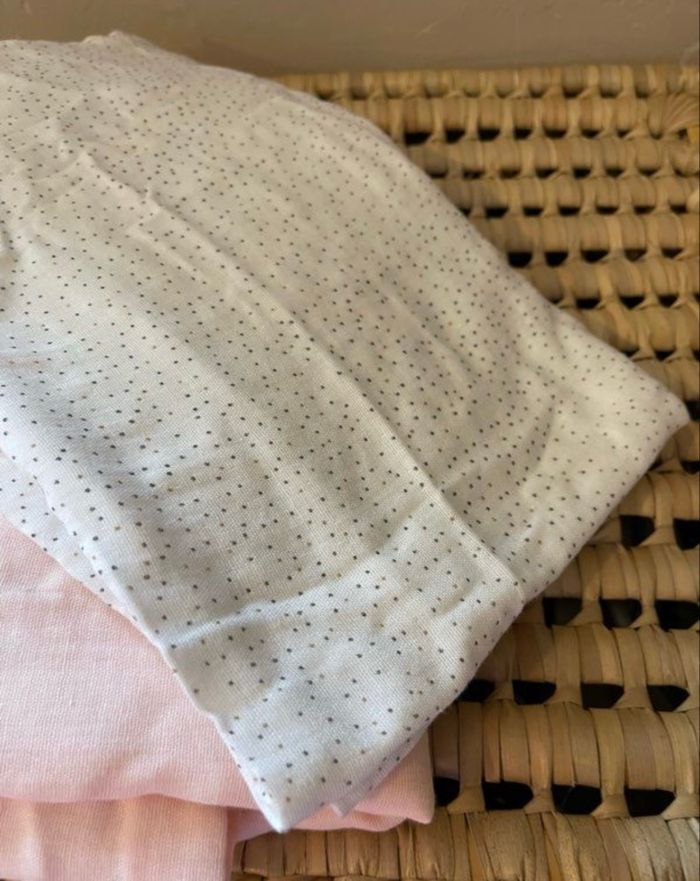 Housse de couette et taie d’oreiller assortis pour lit de bébé. Dimension 100x40 Collection Susie et Bonnie de chez Nattou Neuf Couleur rose pale, blanc et gris Neuf jamais utiliser car mes filles ont eu un grand lit directement