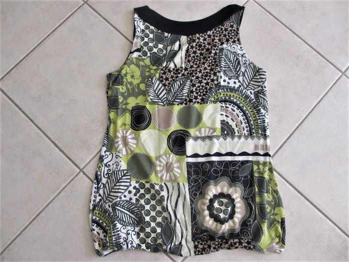 Blouse / Débardeur femme Cache Cache - Taille 1 94 % viscose, 6 % élasthanne. Avec doublure intérieure 100 % polyester. Bon état (la doublure est déchirée à l’arrière, en haut à droite : voir dernière photo).
