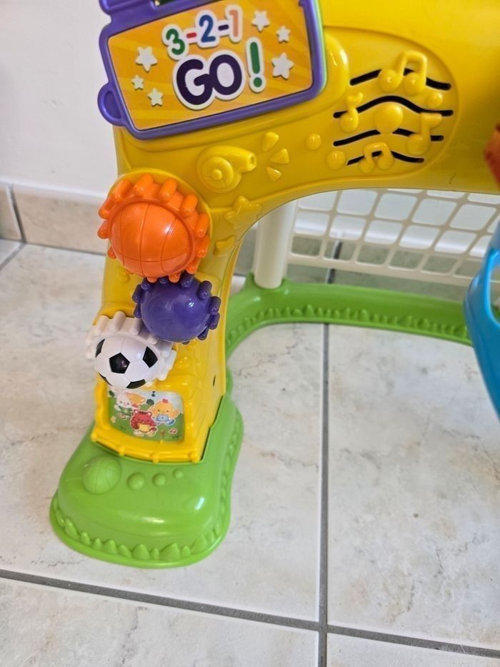 ➡️ prix est ferme ➡️pas d offres (Je n y répondrai pas merci) Etat neuf ⚘️⚘️⚘️⚘️ ➡️(Juste plus le carton d origine) Pas d envoi en looker (trop gros!!!!) Entraîne-toi à viser la cage de foot et le panier de basket pour compter les points ! Un centre de sport interactif tel que le foot ou le basket pour que Bébé s’exerce dès le plus jeune âge en faisant des découvertes ! Bébé a le choix entre deux sports très appréciés : le basket ou le foot. Avec Bébé multisport interactif, votre enfant découvre les formes, les premières lettres de l’alphabet et compte jusqu’à 10 en marquant buts et paniers. Super ! Les nombres s’affichent à l’écran et des animations rythment le jeu. Un centre multisport interactif 2 en 1 pour s’éveiller et se dépenser ! Lorsque Bébé appuie sur le panier, il déclenche des petites phrases et une chanson. 3 boutons à presser pour découvrir les chiffres et compter jusqu’à 10, les formes et déclencher des mélodies. Une voix entraînante et des animations pour encourager Bébé. Les nombres s’affichent et des animations dynamiques accompagnent les sons. 2 chansons et 18 mélodies.