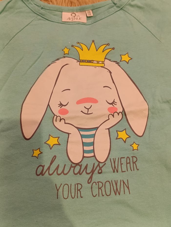 Pyjama coton 2 pièces Lapin "always wear your crown" Taille 112-116 (6 ans) Tâche sur le dos d'une manche 9th avenue #liibysixans #6ans #pyjama #pyjamafille #9thavenue