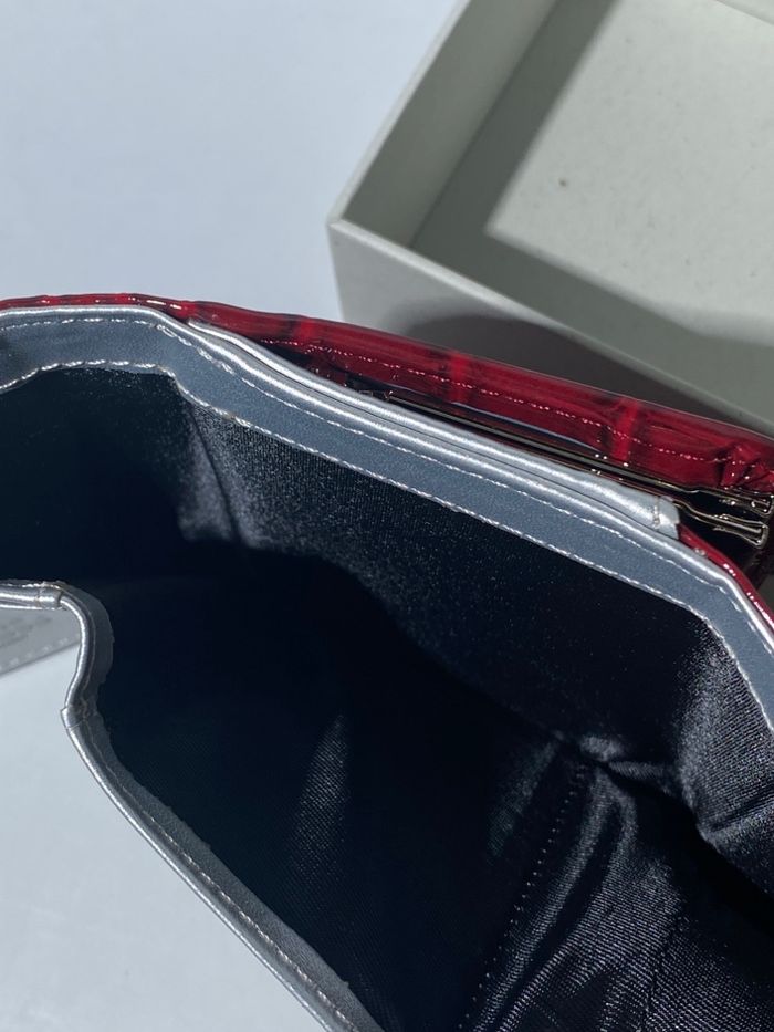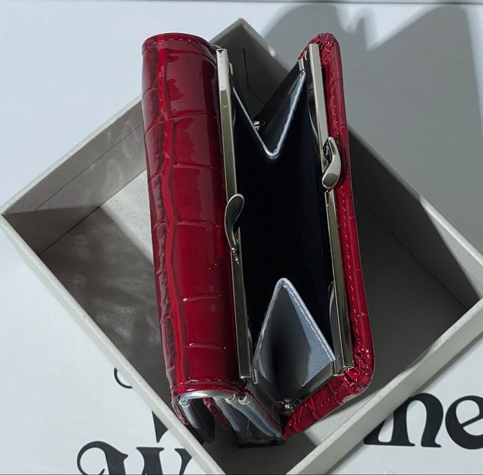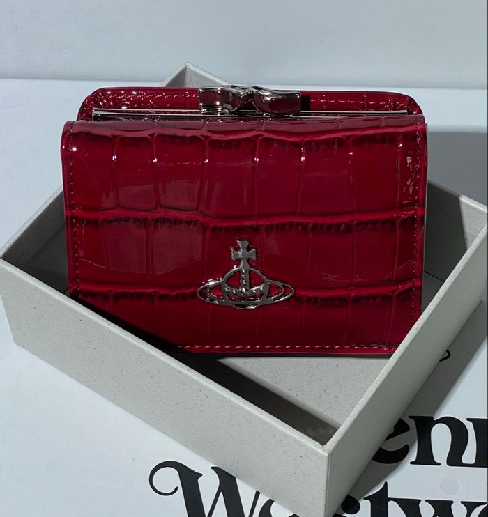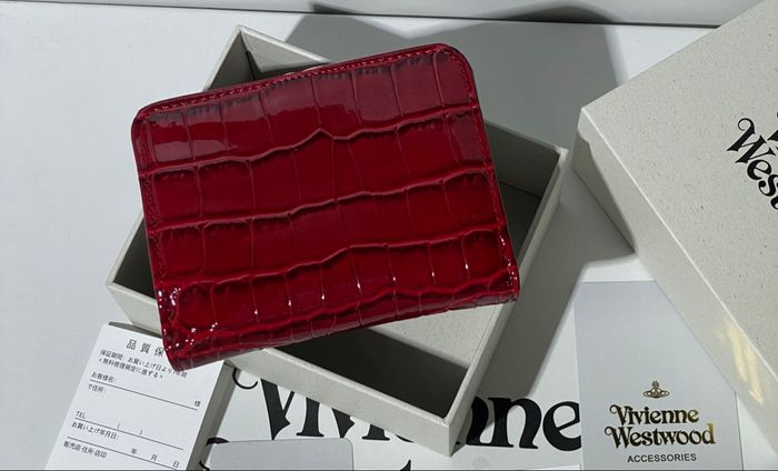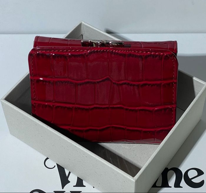 Portefeuille Vivienne Westwood - Cuir Verni Crocodile Rouge Cet élégant portefeuille en cuir verni à effet crocodile se distingue par sa couleur rouge profonde et son logo "Orb" argenté emblématique. Il combine un porte-monnaie à fermoir "clasp" rétro et des compartiments organisés pour vos cartes et billets. État neuf dans sa boîte d'origine, c'est une pièce luxueuse et audacieuse qui apportera une touche punk sophistiquée à vos accessoires.