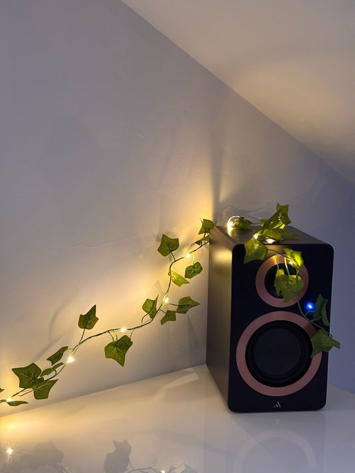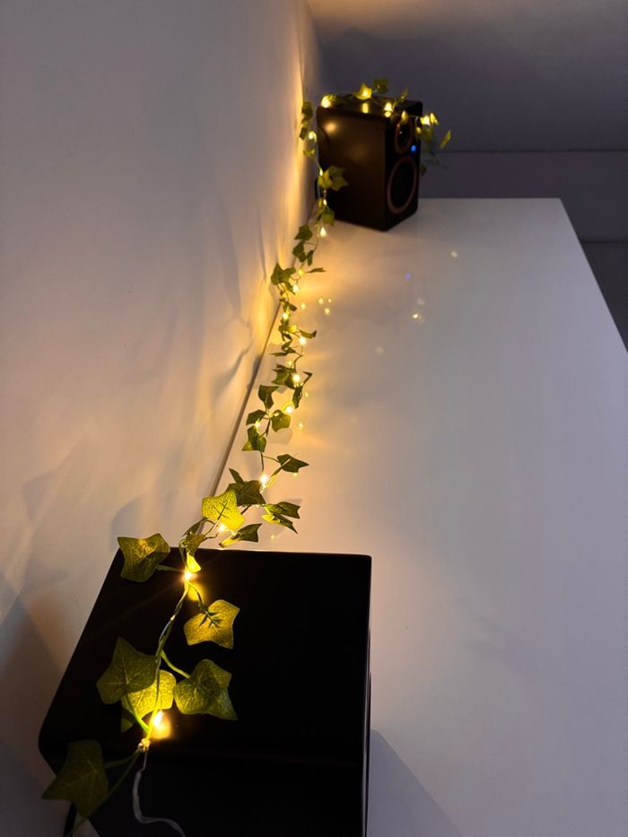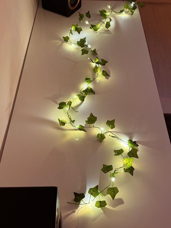 Guirlande lumineuse LED avec feuilles vertes style érable, lierre parfaite pour créer une ambiance Chaleureuse.🌿✨ Fil de fer flexible, lumière chaude, fonctionne à piles. 🔋 Longueur du produit 2M 20 LEDS Remis dans son emballage d'origine pour la vente, envoi protégé 📦✅ Parfaite pour sublimer votre intérieur: chambre, salon ou espace cosy✨