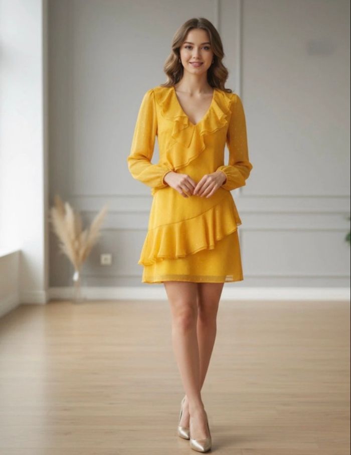 Robe jaune à motifs dorés
