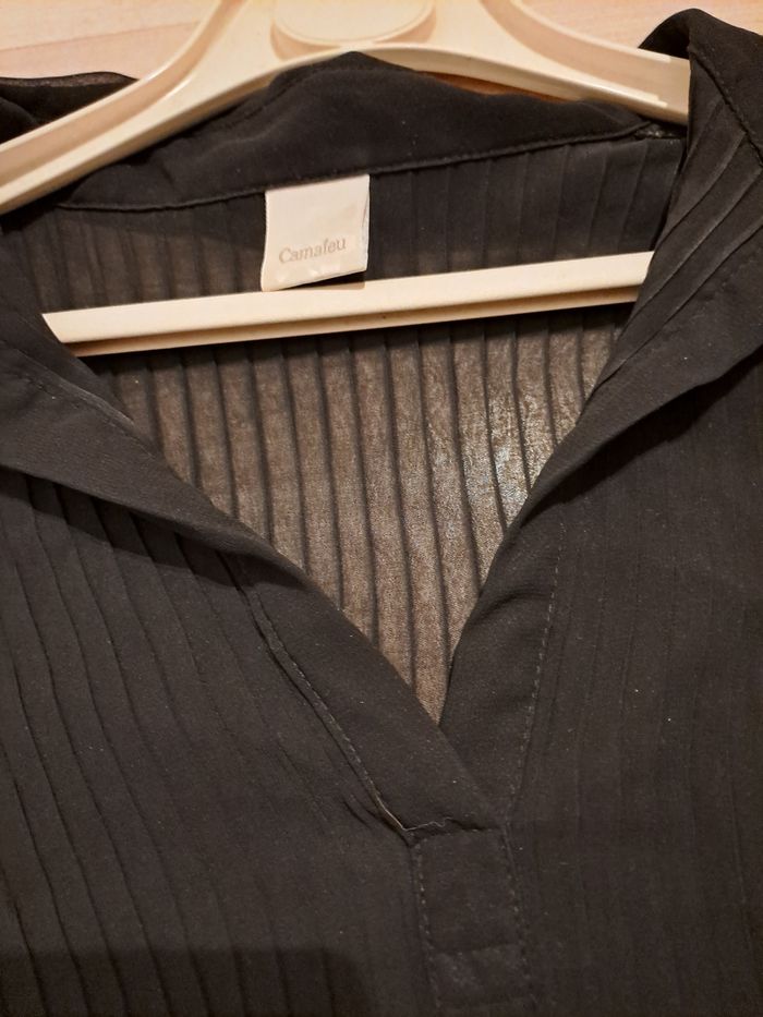 Tunique plissée de coloris noir avec petits boutons aux poignets. Etat neuf.
