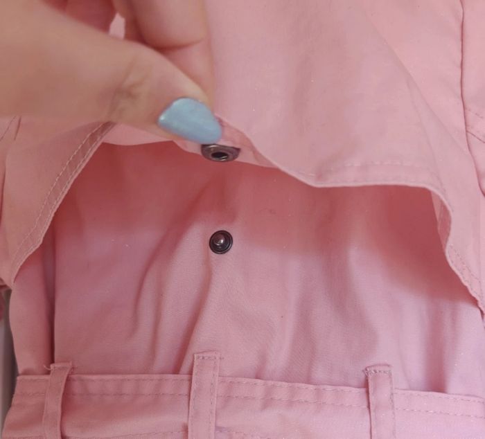 Porté, petites tâches sur une des photos. J'ai joint une photo portée pour montrer à quel point il couvre, c'était au moment où ma fille commençait à mettre du 3 ans. Il taille plus grands. Il est légèrement pailleté. Réductions activées sur les lots ☺️