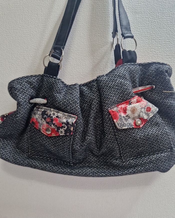 Bonjour , vend sac à main bandoulière , femme , style sac fourre tout , design rétro : petit carreau noir et blanc , poches fleurie , très bon état #mode #trend #tendance #chic #élégant #marque #quality #qualité #femme #woman #women #sac #bag #sacamain #sacbandouliere #vintage #rétro