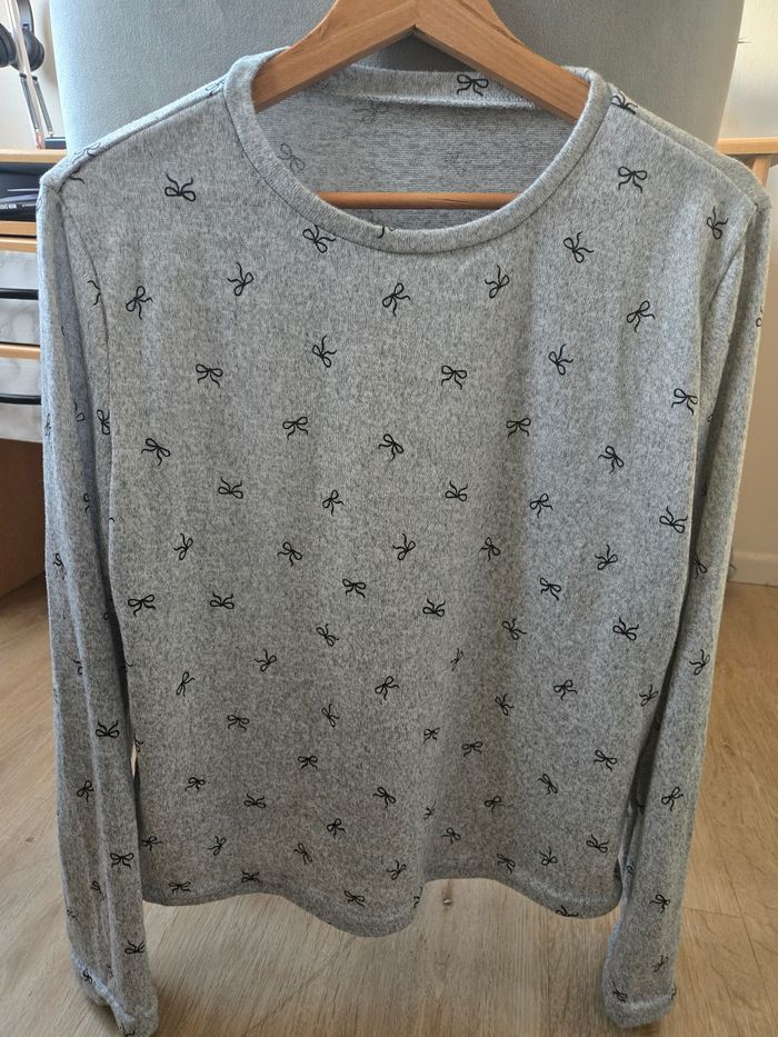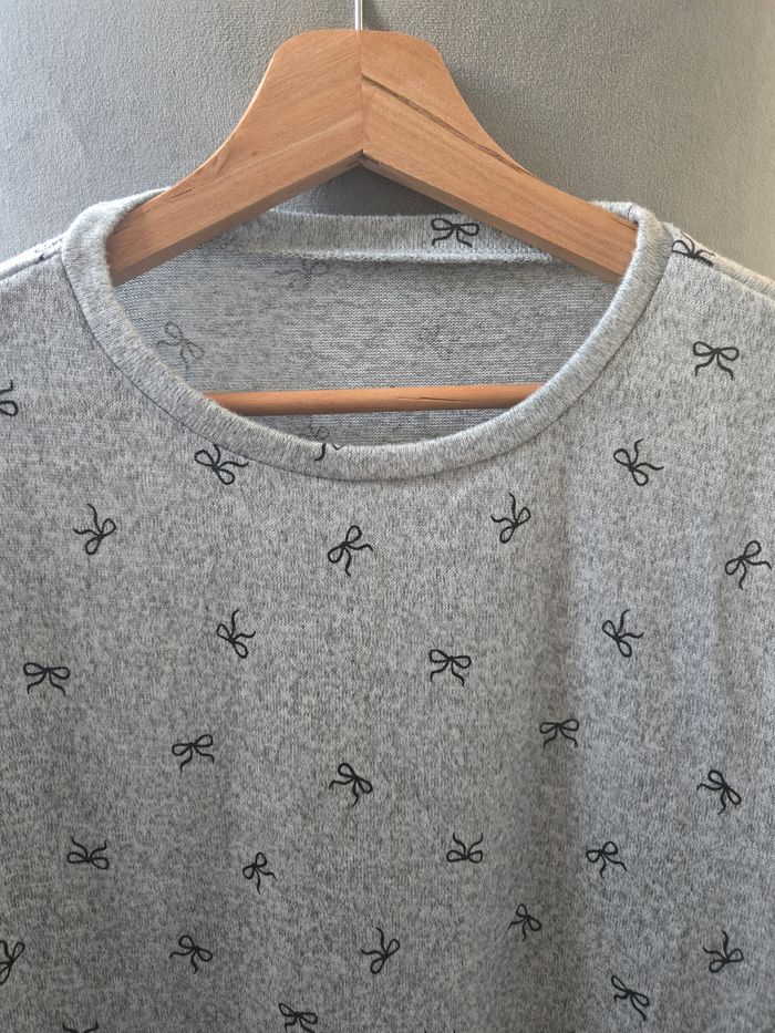 Pull gris avec noeud noir - photo numéro 1