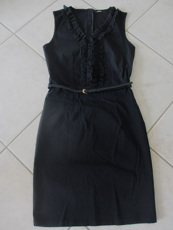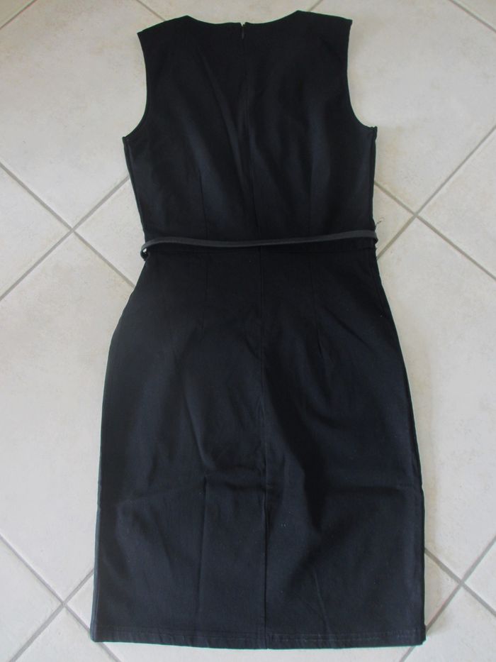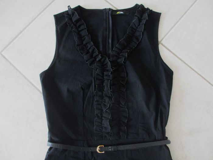 Robe courte noire sans manches femme Mim - Taille 34 Coupe près du corps. Fermeture éclair au dos. Ceinture synthétique. Très bon état (très peu portée).
