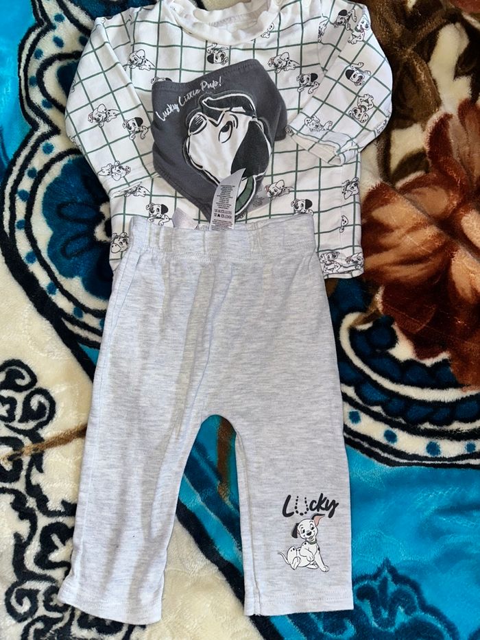 Ensemble 3 pièces 9 mois comme neuf, ce lot comprend t shirt manche longue, pantalon, bavoir #9moiskay57070 #disney9mois #commeneuf #envoirapide #bebegarcon #bebe9mois #garcon9mois #disney #disney9mois #101dalma