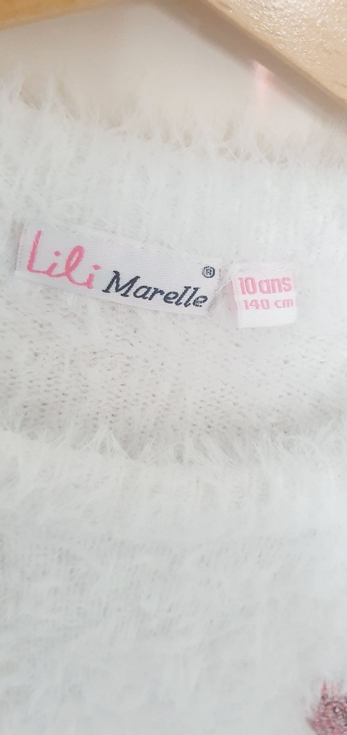 Pull Lili Marelle Taille 10 ans Coloris blanc avec motif Matière douce au toucher Très bon état