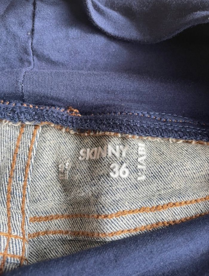 Jeans de grossesse skinny, avec élastique pour le ventre. C’est une taille S. Il est très bien taillé et bien élastique.
