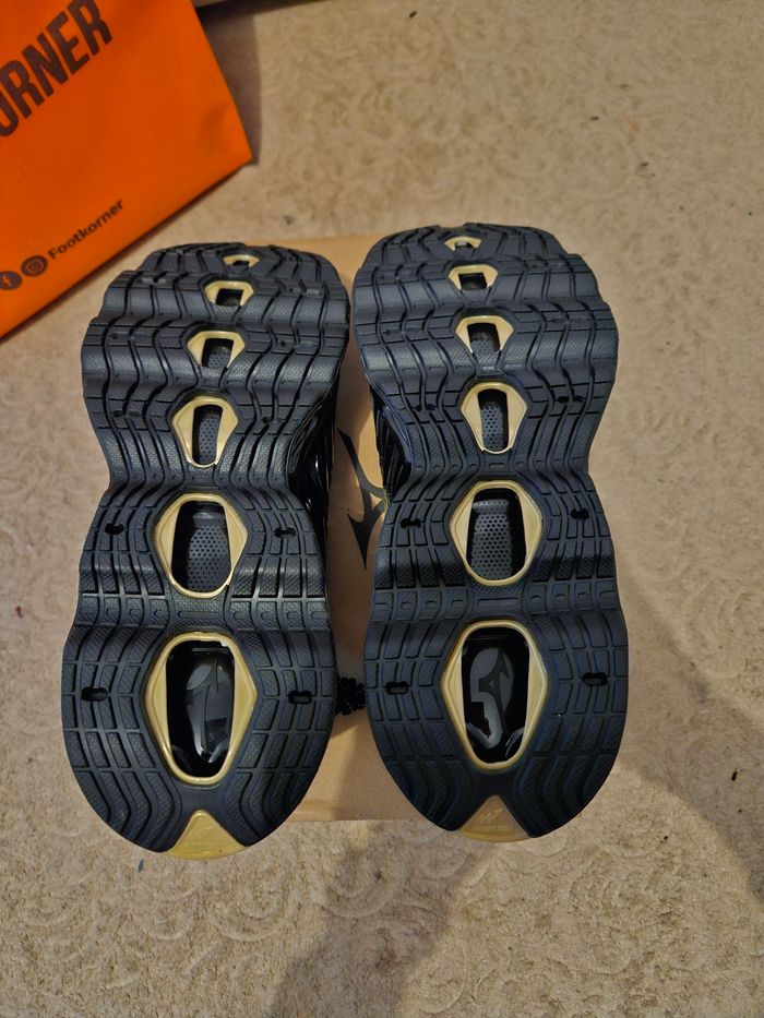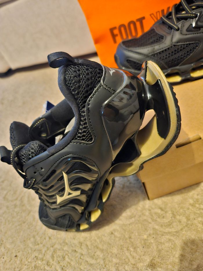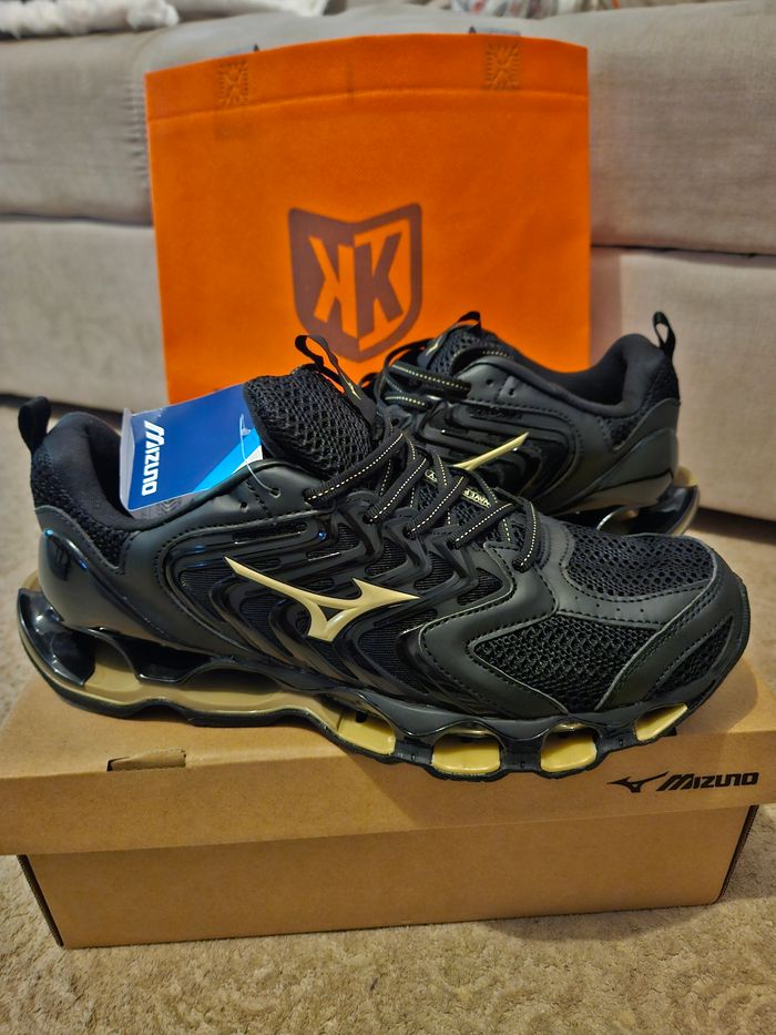 Bonjour vends cette magnifique paire de MIZUNO modèle Wave Prophecy Neuves avec étiquette et boite Taille 44 Couleur NOIR/OR Envoi rapide et soigné 💯