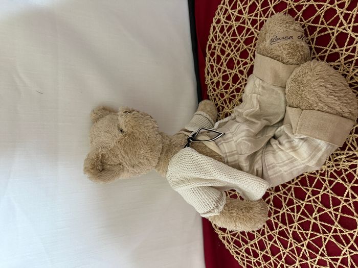 doudou ours en peluche beige pantalon rayé gilet tricot louise mansen - photo numéro 6