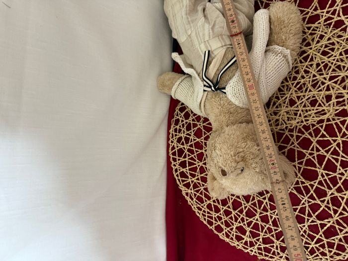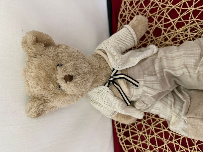 doudou ours en peluche beige pantalon rayé gilet tricot louise mansen - photo numéro 5