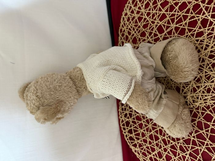 doudou ours en peluche beige pantalon rayé gilet tricot louise mansen - photo numéro 4