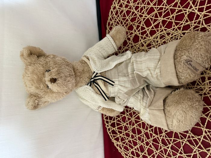doudou ours en peluche beige pantalon rayé gilet tricot louise mansen - photo numéro 1