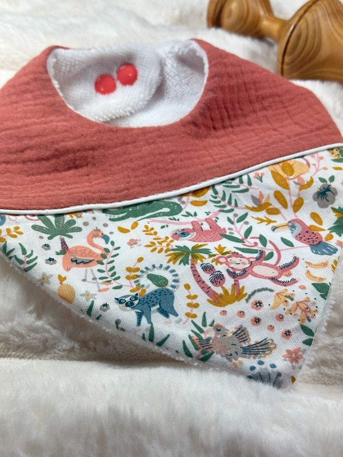 Bavoir naissance à 12 mois Coton oekotex savane Gaze de coton terracotta Boutons-pression Micro éponge de bambou, ultra douce et absorbante Neuf. Jamais utilisé. #bavoir #bavoirnaissance #cadeaunaissance