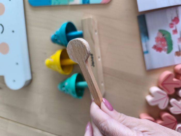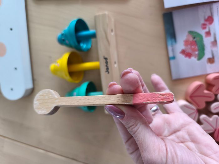 Box de jeux adaptée aux 24 mois (et moins, et plus ;-) ) Parfait état, sauf les clochettes, où mon fils à "mangé" la baguette. Il y a donc des traces de dents 🫣