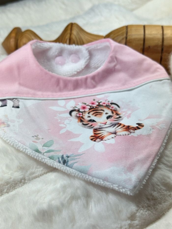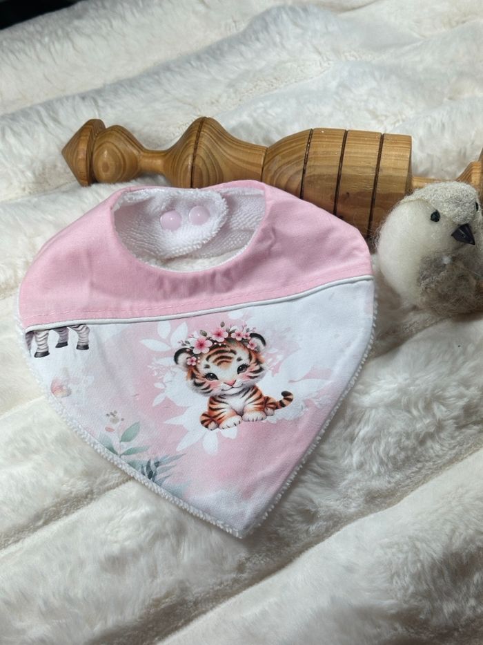 Bavoir naissance à 12 mois Coton premium oekotex tigre Coton oekotex rose Boutons-pression Micro éponge de bambou, ultra douce et absorbante Neuf. Jamais utilisé. #bavoir #bavoirnaissance #cadeaunaissance