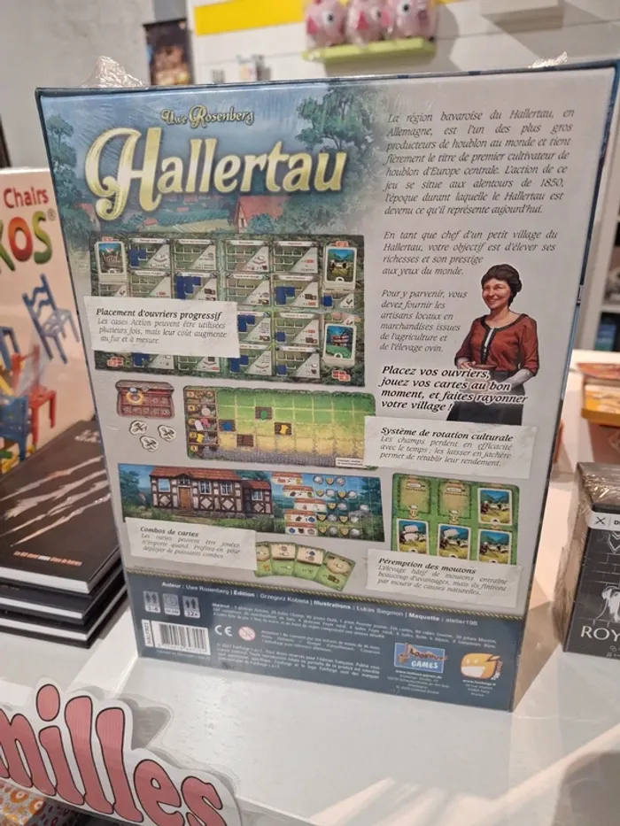 Incarnez le maire d’un petit village de la région de Hallertau au XIXe siècle. Fournissez aux artisans locaux les ressources dont ils ont besoin : cultivez vos champs, élevez des moutons et développez votre village grâce à vos cartes et à une mécanique riche de placement d’ouvriers et de rotation des cultures. 🎲 Un grand jeu de stratégie signé Uwe Rosenberg (auteur de renom), idéal pour les amateurs de jeux experts et immersifs. État : neuf, version française. 💶 Prix : 25 € (non négociable) au lieu de 70 €. 📦 Envoi rapide et soigné.