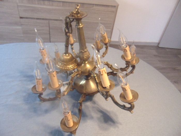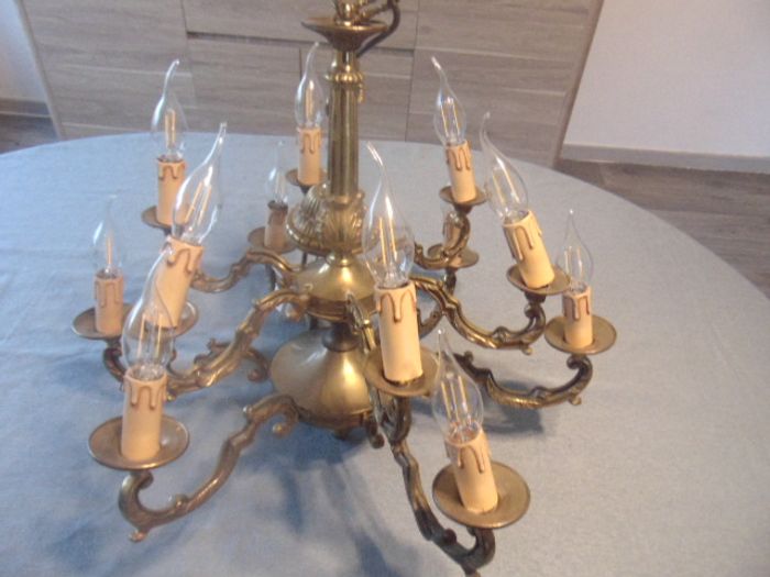 Lustre en bronze doré – 12 bras – Style Empire / XIXe – Élément de prestige - photo numéro 1