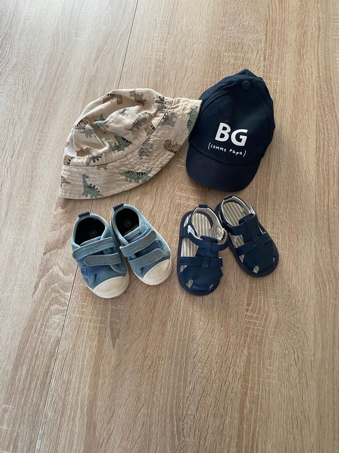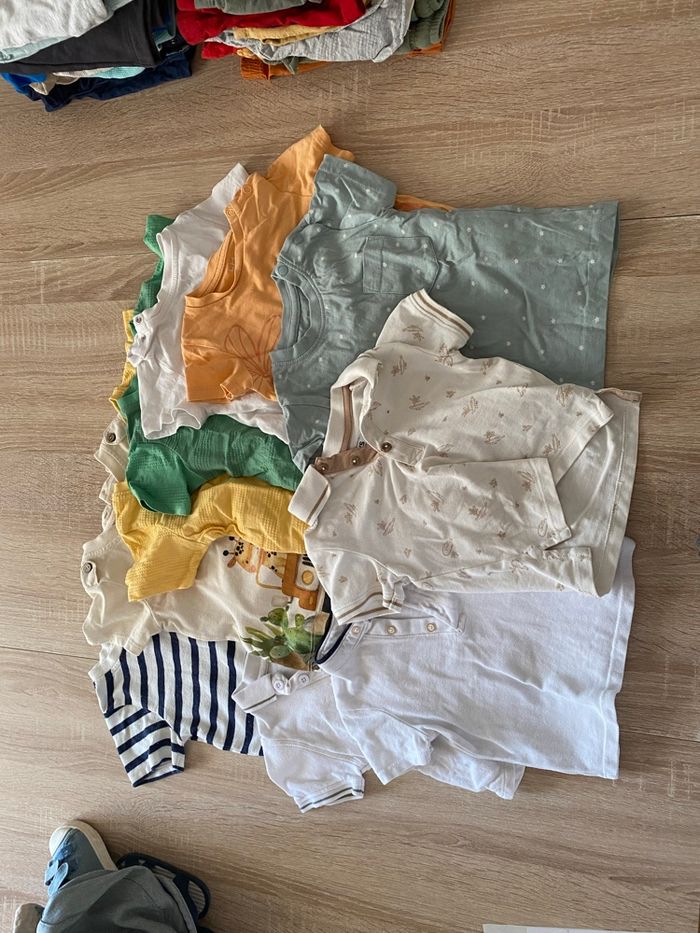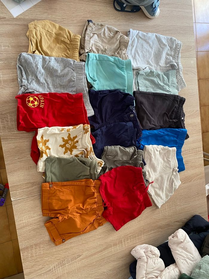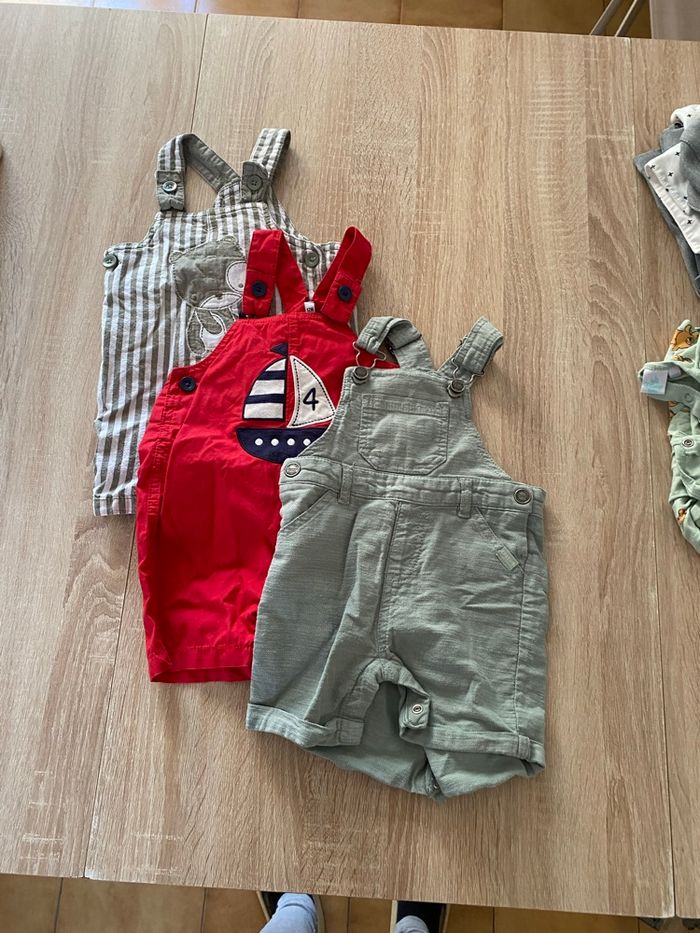 Pour la plupart jamais porté ou une seule fois Aucune tâche ni trou En parfait état 50 cts/ pièce = 18€ Le lot comprend : 17 shorts 7 tee shirt 3 polos 2 pyjamas 3 salopettes 1 bob 1 casquette 1 paires de basket 1 paire de sandales