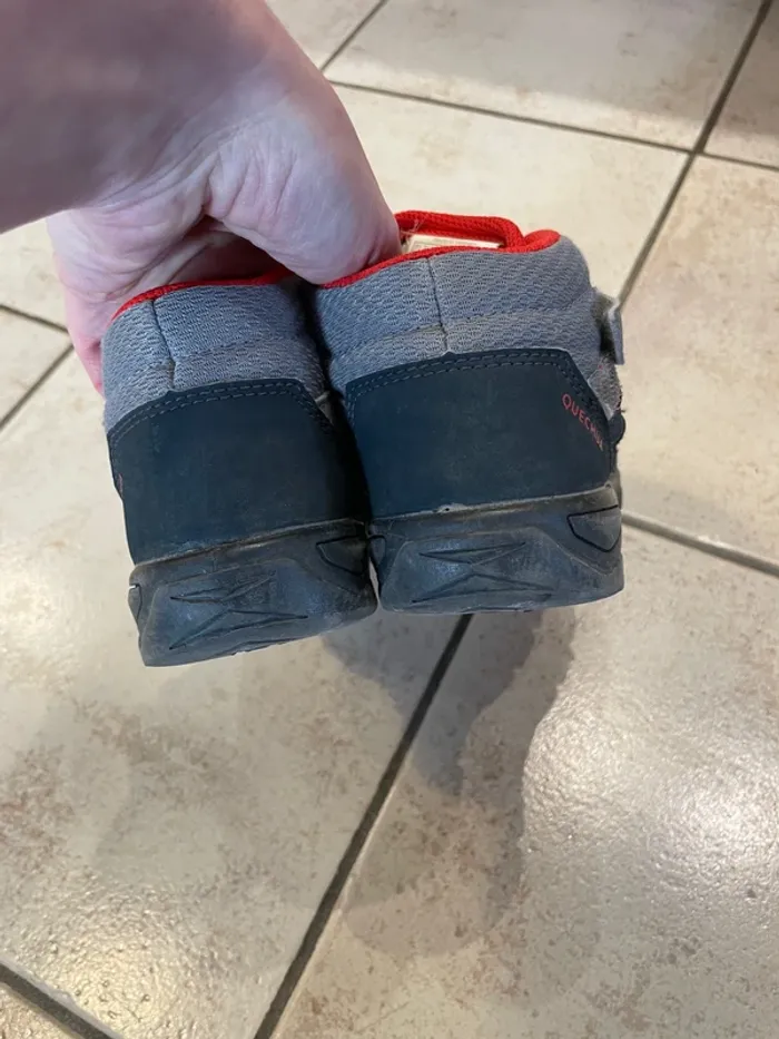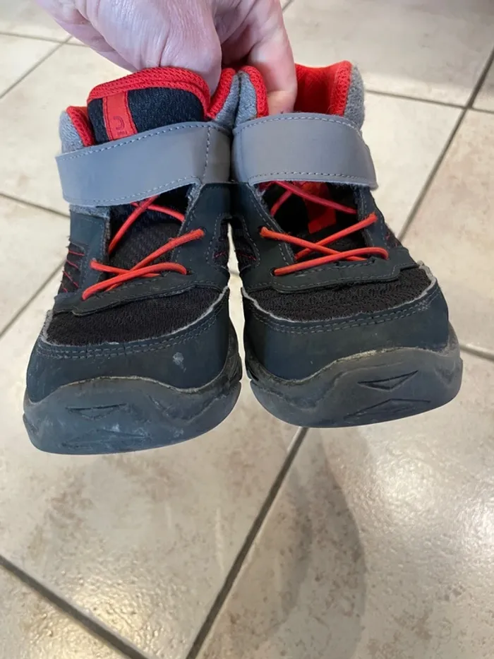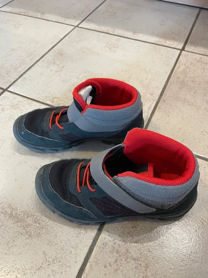 Chaussures de marche pour enfant de chez Decathlon Se ferment avec un scratch devant. On adore ce modèle et on le rachète une taille au-dessus à chaque fois, celles ci sont en pointure 32. Mon fils grandissant vite des pieds, il ne les a pas portées longtemps, voir les photos pour l'état.