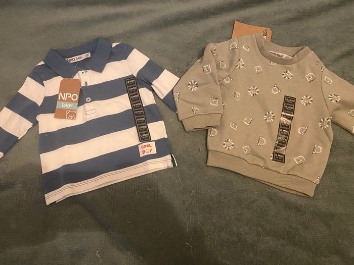 1 Sweat et un t shirt manche longue neuf 12 mois npo baby