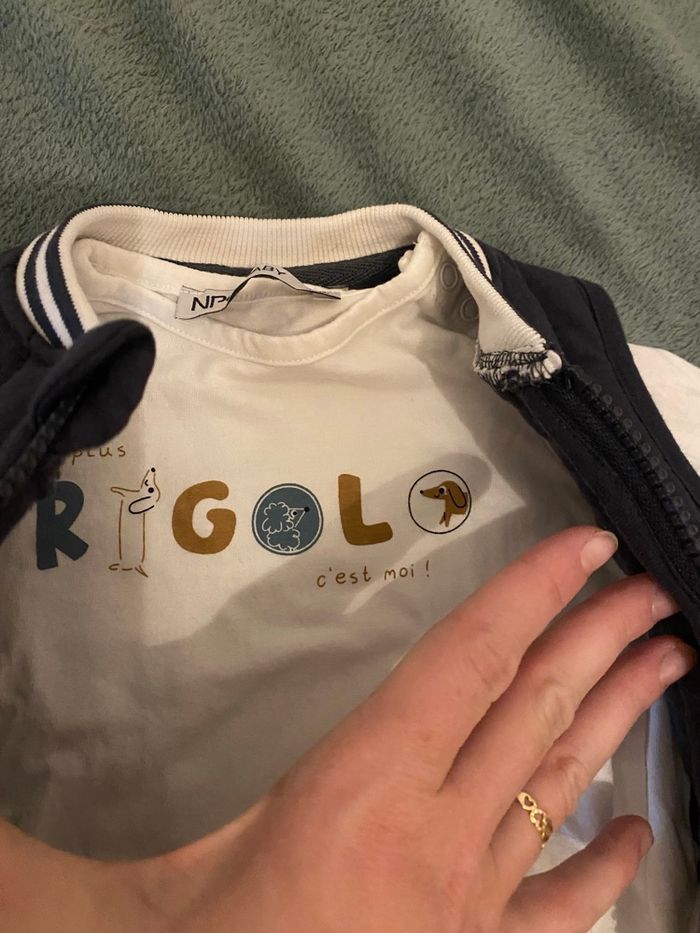 Lot npo 12 mois . Les deux pantalons ont étais porter quelque fois mais le haut et la veste sont neuf