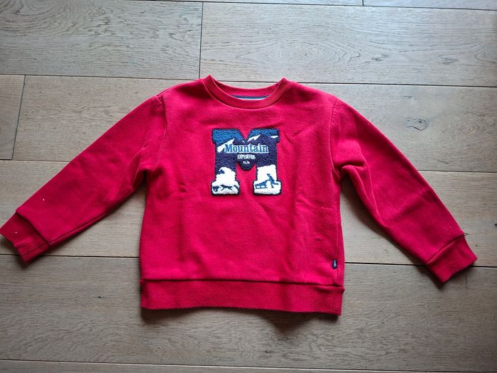 Sweat-shirt Okaïdi rouge en excellent état. Taille 5 ans/110 cm Matière 68% coton, 32% polyester.