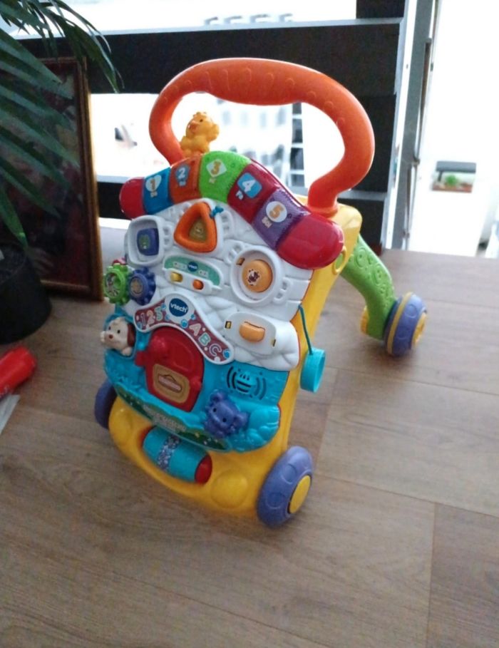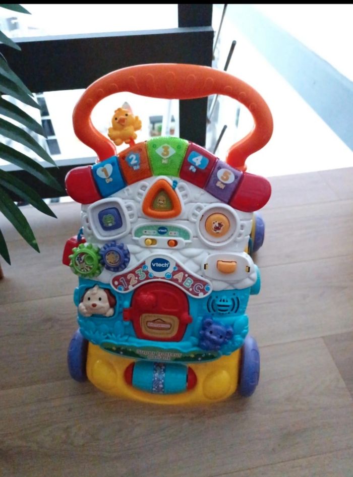 Trotteur parlant vtech , ludique, fonctionne avec piles. Idéal quand bébé commence à se tenir debout ,