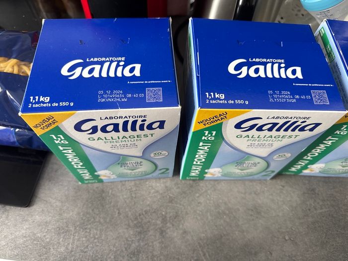 Je vends mes trois boîtes de lait, nouveau format 1,01 kg deuxième âge, six mois 12 mois