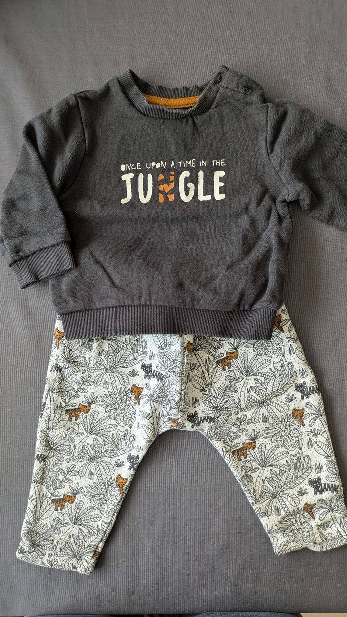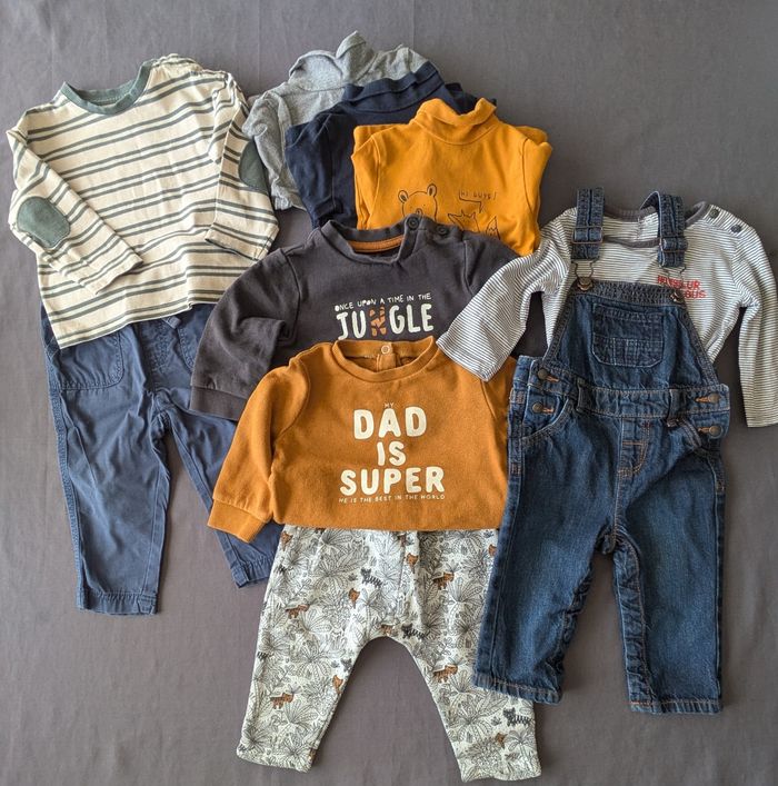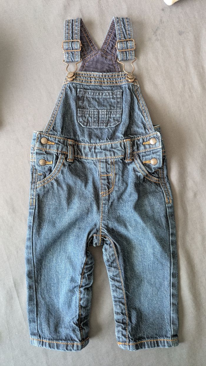 Lots de vêtements garçon 12 mois Kiabi La salopette s'ouvre à l'entrejambe.
