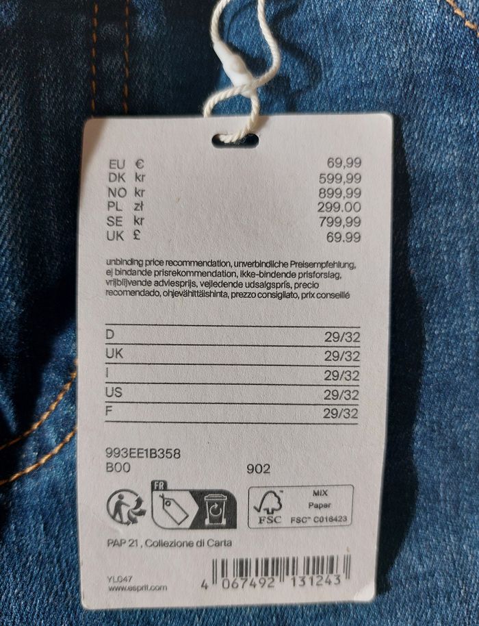 Mid Slim Jean vendu cause erreur de taille. Neuf avec étiquettes. Marque Esprit. TailleW29 L32
