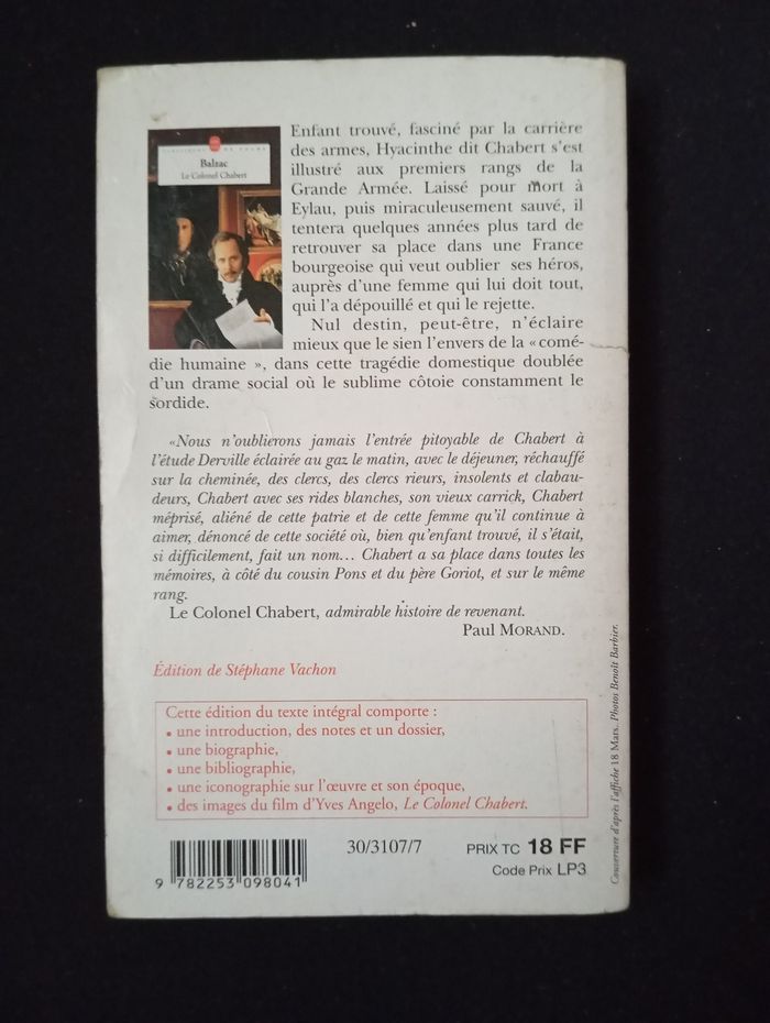 Je vends ce roman "Le Colonel Chabert" de Balzac, édition de poche. - Titre : Le Colonel Chabert - Auteur : Balzac - Éditeur : Le Livre de Poche - Format : Poche - Langue : Français Bon état N'hésitez pas à me contacter pour plus d'informations !